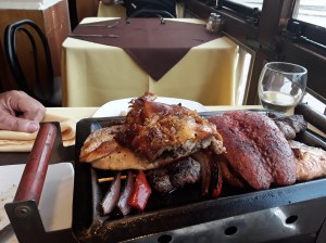 Morskega prašička sva na pladnju videla že tolikokrat, da sva ga morala poskusiti. Ni naju preveč očaral. Kot alternativo sva naročila še zrezek iz alpake (njihove lame), kjer je bila zgodba popolnoma drugačna. Okusno meso (nekje med govedino in konjskim mesom) je bilo zares dobro pripravljeno: mnjammmmm…