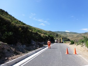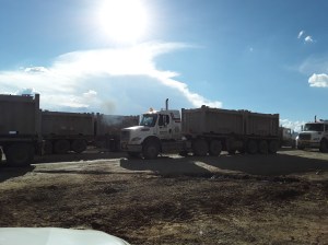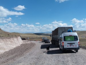V Espinarju sva si vzela čas za kosilo (njihov sicer cenovno zelo ugoden “menu” naju je “spremljal” še nekaj dni, saj sva zaradi tega kosila “pridelala” želodčne težave…). Kmalu za Espinarjem sva se ustavila. Pred nama konvoj tovornjakov (prevažali so jalovino iz bližnjega rudnika), ki očitno ni imel posebnega namena, da bi se kmalu premaknil. V spremljevalnem vozilu (vsak konvoj ima spremljevalno vozilo, ki opozori na dolžino oz. velikost konvoja) so nama povedali, da je cesta v delu in je trenutno zaprta. Pot bomo lahko nadaljevali čez kakšne pol ure.