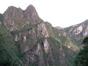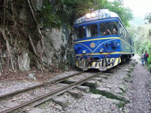 Vodič je kar hitro stopil po stezi ob železnici. Tudi midva sva mu dokaj solidno sledila, saj sva vedela, da bomo v kraj Aguas Calientes (ki je tik pod hribom, na katerem je Machu pichu) prišli šele ob mraku. Res je bilo tako. Še večerja in nasvet, da naj bova naslednji dan zgodnja (nasvet nama je dal nov vodič, ki naju je “prevzel”). Ker sva imela hoje dovolj, sva raje kupila avtobusne karte (12 USD na eno stran). Iz Aguas Calientes do Machu pichu je namreč cca 600 metrov višinske razlike, peš pot poteka praktično ves čas po stopnicah, napotki so malo čudni (dobra ura hoje … vendar moraš začeti hoditi okoli štirih, če hočeš bit ob šestih na vrhu … v Peruju je pač čas malo drugače definiran), pešačenja sva imela že kar dovolj!