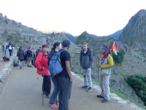 Pa so potem kar pridno prihajali busi, tako da sva prišla na vrh pravočasno. Vodič je res že čakal. Počakal je, da smo se vsi zbrali in šli skupaj skozi ostanke kraljevske letne rezidence. Machu pichu je bil tudi za Inke skrito mesto, za njegov obstoj so vedeli le “posvečeni”. V ta kraj so se umaknili tudi zadnji Inki, ki so po porazu in kapitulaciji Cusca zbežali pred Španci. Njihov voditelj je še enkrat zbral močno vojsko (vojščaki so prišli tudi iz Amazonije), ki je ponovno zavzela Cusco, pobrala vse dragocenosti, ki so jih nakradli Španci (in jih še niso uspeli odnesti drugam) ter se ponovno po “Sveti dolini” umaknili proti Machu pichu. Nekje spotoma so varno uskladiščili tudi vse inkovske zaklade. Lokacija tega “skladišča” ni znana…