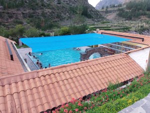 Proti večeru sva poiskala hotelček (ob glavni cesti skozi “Sveto dolino”), ki je bil prav prijeten. Imel je celo majhen bazenček, ki pa ni bil ogrevan, tako da naju je najina želja po plavanju hitro zapustila (temperatura vode je bila okoli 16 ali 17 stopinj). Sva bila skoraj hitreje iz vode kot v vodi!