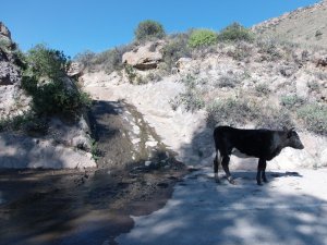 Prvi del je bilo prav hladno, na teh višinah je bila temperatura pod deset stopinj, v drugem delu je bilo precej topleje. Je bilo pa tudi precej sveže. Za to so poskrbele rečice, ki so pretakale preko cest. Asfaltna cesta je bila prekinjena z betoniranim koritom, preko katerega se je zlivala voda. Nič posebnega, če sediš v avtu. Malo bolj posebno, če te voda pošprica do vratu, ko si s kolesom. Po nekajkratnih prečenjih rečic smo bili povsem mokri, mokra niso bila samo oblačila, ampak tudi supergi (a sem omenil, da je bilo potrebno na koncu še pešačiti dobrih 12 kilometrov, midva pa nisva imela rezervne obutve?).