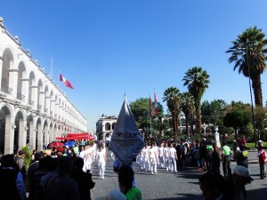 V Arequipo sva prišla šele zvečer (spotoma sva se ustavila na razgledišču, kjer se vidi kar nekaj vulkanov), malo sva iskala najin hotelček, ki se je nato izkazal za najino najbolj luksuzno prebivališče v Peruju (velika soba, balkon, krasen pogled na mesto).