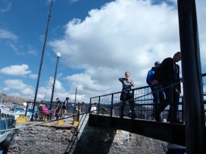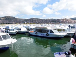 Turistični bus naju je pobral pred hotelom in nas zapeljal do pristanišča. Preden smo se vkrcali na ladjico, naju je čakalo prijetno presenečenje. Na klopci ob pristanišču sva srečala najino svakinjo in njeno prijateljico, ki sta bili tudi v Peruju. Prisrčno smo se pozdravili, malo poslikali, za kaj več pa niti ni bilo časa, saj je najina ladjica kmalu odplula.