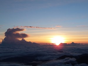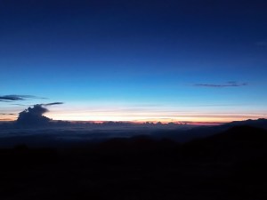 Bilo je dokaj hladno. Spremljali smo prebujanje dneva nad deževnim gozdom. To razgledišče je bilo včasih popularno zaradi zanimivega efekta, saj se je zaradi odbojev, ki so jih povzročali deževni oblaki, dogodilo, da so opazovalci hkrati videli dve sonci ali celo tri. Tega dne takšne mikroklime ni bilo, smo se morali zadovoljiti z enim. Včasih so obiskovalce razveselili tudi domačini, ki so na piščali zaigrali budnico soncu, tokrat smo si jo lahko zažvižgali le sami.