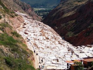 Pot sva nadaljevala po “Sveti dolini”, ki sva jo zapustila pri kraju Urubamba. Na planoti je bil najin prvi cilj Maras oz. soline v njegovi bližini. Soline so uporabljali že Inki, tudi danes so še aktivne. Zanimivo.