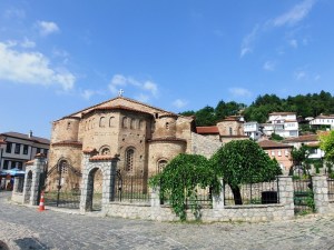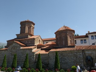 Zjutraj sva se najprej odpravila v Ohrid. Imela sva srečo, da sva našla parkirišče dokaj blizu dela, ki sva si ga želela ogledati. Po obveznem krogu čez rivo sva zavila v stari del mesta do cerkve sv. Zofije. Precej velika cerkev z ostanki poslikav je dandanes namenjena orkestrskemu dogajanju, zelo pogosto ob večerih gosti priznane izvajalce klasične glasbe.