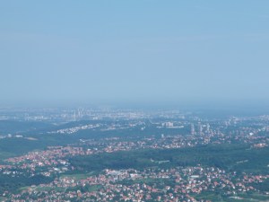 Ni se nama preveč mudilo. Prvi postanek je bil na Avali, hribu južno od Beograda. Ob devetih sva se kot prva zapeljala z dvigalom na vrh stolpa, od koder je bil res lep pogled po okolici.