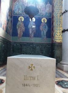 Pot naju je vodila v kraj Cetinje, kjer je imel svojo rezidenco vladika Njegoš. Njegov mavzolej so postavili na vrhu Lovčena (kar dobrih 1.600 metrov visoko), tako da je klima na tej višini že izredno prijetna. Celo mimo manjšega smučišča sva se peljala. Mavzolej je res mogočen, na drugi strani je že sanjski pogled proti Boki Kotorski. Zares čudovito. Zopet nama je prišlo na misel, da Slovenci podobnih objektov, ki bi nam dvigali narodno samozavest, nimamo!