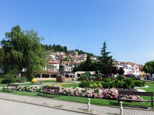 Da bi bilo bolj pestro, sva se nazaj odpravila preko vrha hriba, na katerem je postavljena Samoilova trdnjava. Kar lepo jo obnavljajo, razgled z zidovja je bogat; imela sva kar srečo, saj je bila kljub vročemu vremenu vidljivost kar dobra. Mimo Marijine cerkve (v neposredni bližini je tudi manjša cerkvica, ki je posvečena sv. Konstantinu in sv. Heleni – kar pomemben podatek za mojo boljšo polovico) sva se napotila nazaj v center in preko korza (Helena se je še spomnila, kako so se kakšnih 35 let nazaj po tem korzu sprehajali v gorenjskih nošah, ko so bili na folklornem festivalu). Obvezni sladoled in ponovno na pot.