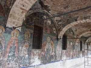 Pri Strugi sva prečkala mejo (ni bilo preveč gneče, tako da sva formalnosti opravila v dobre četrt ure) in zapeljala v Albanijo. Kmalu sva zapustila Prespansko jezero in prišla v Korcë, najin naslednji cilj. Zopet sva poiskala rezervirano prenočišče in se potem odpeljala malo ven do kraja Mborje, kjer domačini prenavljajo eno najstarejših pravoslavnih cerkva na tem koncu, posvečeno Kristusu Kralju. Cerkev je bila zaprta, vendar je mimo prišel eden izmed domačinov in obljubil, da bo poklical tistega, ki ima ključe. Po petih minutah je res prišel možakar s ključi in nama cerkvico odprl. Zares sva bila prijetno presenečena, čeprav notranjost ni najboljše ohranjena.
