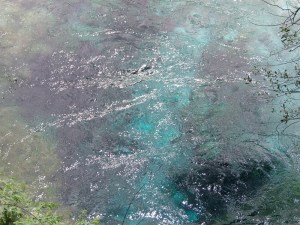Malo sva se morala vrniti proti grški meji in preko hriba proti najini najbolj južni točki v bližini kraja Sarande. Spotoma sva si v zeleni dolini ogledala tudi močan izvir, ki ga imenujejo “Blue eye”. Relativno hladna voda (sigurno pod 18 stopinjami) izvira iz globoke jame (globina verjetno preko 10 metrov), kar povzroči modrikasto barvo izvira. Zanimivo. Mislim, da tako globokega in močnega izvira v Sloveniji ne premoremo.