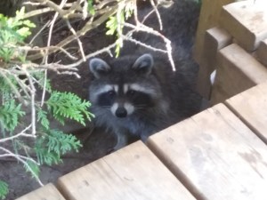 Motel v bližini Mont Tremblanta je bil prav simpatičen. Imajo tudi simpatičnega “ilegalca”, ki se ga po uradni objavi ne sme hraniti, v resnici pa je očitno precej drugače: čisto od blizu naju je prišel pozdraviti zvedavi rakun, precej solidno rejen (očitno obiskovalci niso v celoti upoštevali navodil upravnika). Rakuni sicer ne veljajo za pretirano koristne živali, tako da upravo deloma razumem…
