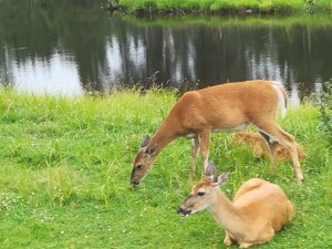 Bon Desir je bil tudi najina najbolj vzhodna točka na poti (dobrih 48 stopinj zahodno od Greenwicha), pa zopet po poti malo nazaj proti fjordu in po vzhodni strni fjorda proti severu. Pri kraju l’Anse de Roche sva se ponovno zapeljala do fjorda, vendar posebnega razgleda ni bilo. Nad krajem je tudi razgledna točka z manjšim stolpom, ki sva je prepozno opazila, da bi se ustavila pri njej. Ob reki sv. Margerite sva nadaljevala proti severu, pot je bila lepa in prijetna, občasno so naju ponovno razveseli znaki, ki so opozarjali na to, da lahko na cesti srečamo losa. Midva te “sreče” nisva imela. Losi so kar velike in zaradi tega ob morebitnem naletu z avtom kar nevarne živali. Ne samo njihova teža, tudi njihovo rogovje predstavlja nevarnost. Mogočno losovo rogovje lahko namreč v celoti sname streho avtomobila (in seveda, vse kar je neposredno pod streho, tudi glave potnikov). Morda je bila vožnja ob tej rečici celo eden najlepših delov poti v Kanadi.