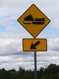 Med zanimivimi znaki je prav gotovo tudi opozorilni znak za prečkanje ceste z motornimi sanmi. Praviloma so znaki sicer v parih: prvi opozorilni znak se pojavi kakšnih 200 metrov prej, drugi opozorilni pa neposredno pred aktualno lokacijo.
