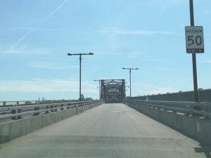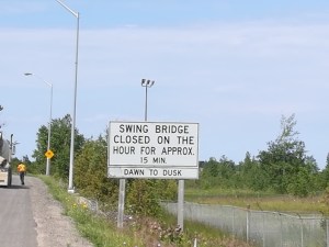 Pred vstopom na otok naju je pričakalo še eno presenečenje. prehod preko mostu je bil zaprt, ker je bil kanal med otokom in celino v tistem času namenjen prehodu ladjic. Zanimivo je bilo to, da ne gre za dvižni most, ampak za rotirajoči most. Glavni del mostu je postavljen na stebru v jezeru in se obrne za 90 stopinj (obojestransko). No, pa sva videla še nekaj novega!