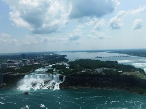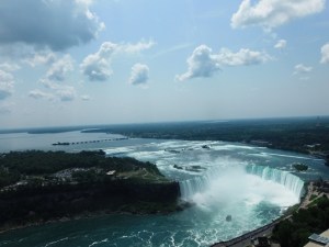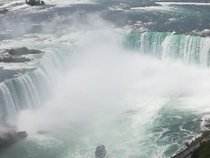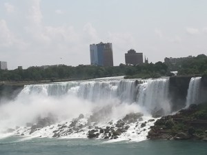 Skupaj s sestrično smo se odpeljali do Niagarskih slapov. Ker je bila reka Niagara v tem obdobju zelo vodnata, so bili tudi slapovi lepi in mogočni. Že pri njihovem opazovanju z vrha smo bili malo mokri (vetrovi pogosto zanesejo meglice čez rob), tako da se za ogled z ladjico nismo odločili.