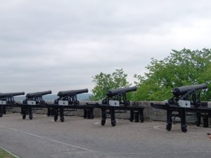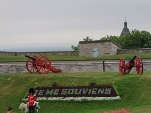 Po menjavi straže smo si ogledali še trdnjavo, ki je bila s svojo pozicijo na vzpetini nad reko sv. Lovrenca zares dobro zasnovana in s sistemom dodatnih notranjih obrambnih linij tudi učinkovito zavarovana. Topovi nad rtom so lahko prestregli vsako ladjo, ki bi želela pluti mimo, največji top je imel doseg celo več kot tri kilometre, kar je precej dlje kot je širina reke pod Quebecom. Danes za trdnjavo skrbi 22. kanadski polk, ki ima kar bogato zgodovino pri kanadskih vojaških uspehih (kozel očitno res pomaga, saj priznam, trmast je pa res).