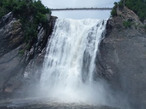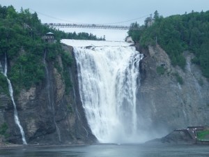 Jutro je bilo deloma oblačno, čeprav je dež ponehal že preko noči. Po zajtrku sva se odpravila mimo Quebeca proti vzhodu. Prvi del poti je bil enak kot sva ga že prevozila prejšnji dan (je bilo pač prenočišče toliko cenejše, da sva se odločila za takšno pot). Ob reki svetega Lovrenca sva se zapeljala pod goro Mont Sainte-Anne, ki velja za popularno kanadsko smučarsko središče (spodnja postaja cca 200 m-n.m., zgornja postaja dobrih 800 m.n.m.