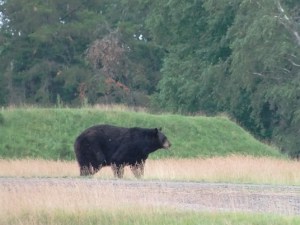 Zanimivo se nama je zdelo, da so bili črni medvedi dokaj prosti in so se sprehajali po odprti savani, v neposredni bližini drugih živali. Vodič je rekel, da je ta vrsta medveda zelo miroljubna, ampak medo je medo in pač kosmat za ušesi…. Saj bizonov to verjetno ne moti preveč (so tudi za medveda preveliki), toda srnice bi pa lahko bile povsem spodobni obrok za medveda.