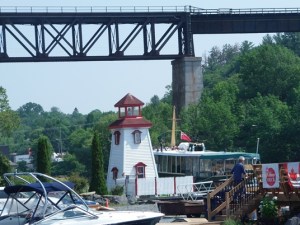 Naslednji postanek je bil v kraju Barrie, zelo živahnem obalnem mestu ob jezeru Simcoe. Ker je bil ravno pravi čas za malico, sva si na prijetnih klopcah ob rečni promenadi privoščila nekaj dobrot.