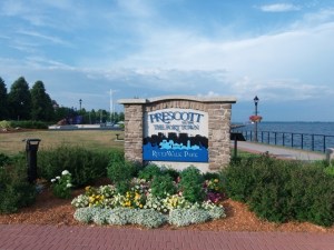 Še malce naprej do kraja Prescott, ki je bil včasih dokaj pomemben kraj, danes pa je stran od dogajanja. Ni čudno, da so njegovi hoteli preurejeni v domove za ostarele. Včasih je kraj služil za trajektno pristanišče proti ZDA (Ogdenburg), danes je dobrih 10 km naprej zgrajen most, trajekt ni več potreben in kraj je zaspal v spominu na bogato preteklost. Pa ga vseeno poskušajo oživaljati, poleti imajo vsak petek festivalni večer, tokrat je nastopala starejša blues skupina iz Ottawe. Prav primerno, saj so bili tudi poslušalci kar opazno starejši od naju. Ohranjena je še trasa železnice, po kateri so včasih dovažali robo do reke.