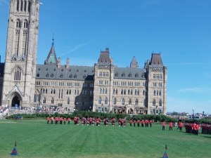 Pot naju je ponovno zapeljala malo na sever, do glavnega mesta Kanade, v Ottawo. Prispela sva ravno pravi čas, da sva si ogledala menjavo straže pred njihovim parlamentom (vsekakor precej bolj dolgočasna kot tista v Quebecu, niti kozla niso imeli, imeli pa so škotska krila in enake kučme kot v Quebecu! Nisva uspela ugotoviti, kako sploh kaj vidijo skoznje, saj imajo potisnjene globoko preko oči). Še sprehod mimo ostalih pomembnejših stavb in vračanje po peš uličici v središču mesta. Ottawa je prav prijetno mesto.