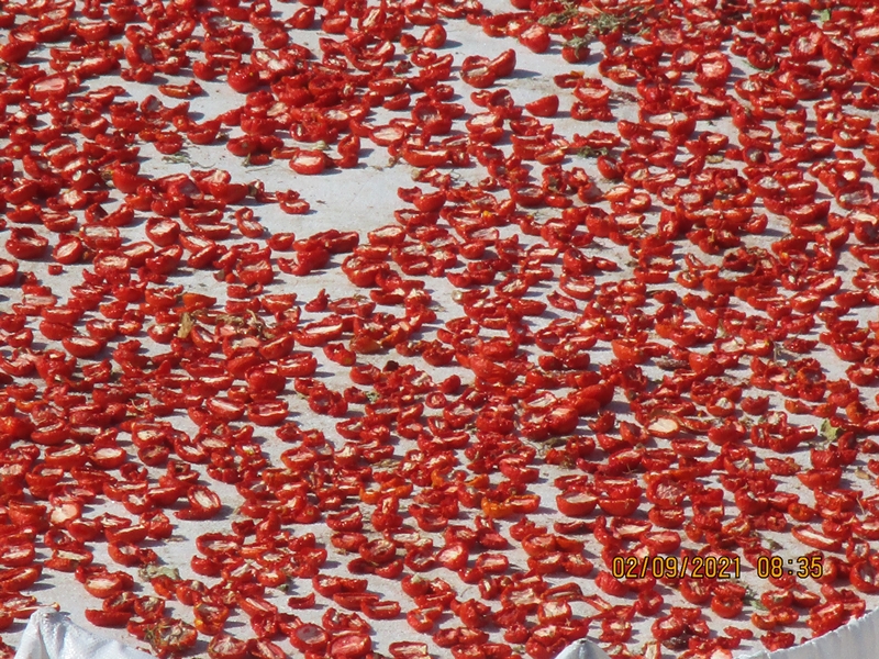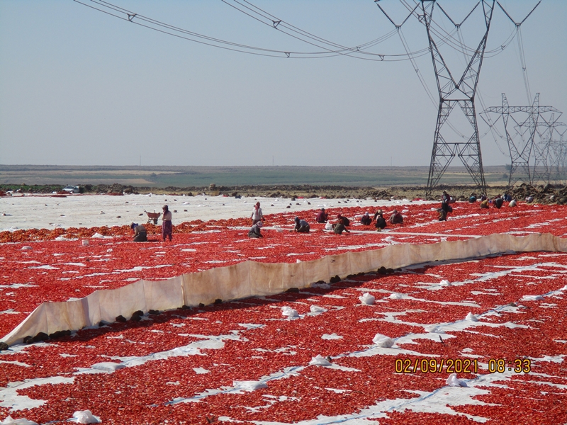 Prvi dan najinega potepanja se je pričel v smeri proti zahodu. Kvalitetna štiripasovnica naju je peljala do kraja Siverek, kjer sva se obrnila malce proti severu. V dolinah je bilo dovolj vode, tako da so bila polja precej rodovitna. Prej so morali ponekod po njivah odstraniti še večje skale (skoraj že balvane), da so lahko zemljo obdelovali. Na poti sva srečala tudi zanimivo sušenje paradižnikov in paprik, ki sodijo med bolj pogoste pridelke na tistem koncu.