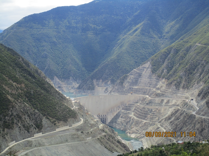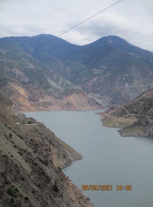 Kmalu sva prišla do področja, kjer so Turki opravljali v dolini obsežna gradbena dela. Povsem na novo je bila speljana cesta proti Artvinu (zanjo so naredili povsem novo traso, z obilico predorov in viaduktov). Midva sva se po dolini spustila navzdol in še malo navzgor, tako da sva prispela v kraj Yusufeli. Nad krajem, dobrih sto metrov više sva videla novozgrajene bloke, kamor želijo preseliti prebivalce današnjega Yusufelija. V kraju je sicer dandanes še povsem običajna živahnost, le na obrobju je gradbišče, kjer gradijo nov most za dostop do novega Yusufelija. Da, tam kjer sva stala, bo nekoč stari Yusufeli preko sto metrov pod vodno gladino. Domnevava, da sva ena izmed zadnjih Slovencev, ki sva še doživela utrip starega Yusufelija. Pa zopet po dolini navzdol. Tokrat sva bila bolj pozorna in sva (kar malo skrit v stranski dolini) zagledala jez Yusufeli, ki od tam niti ni izgledal tako mogočno. Šele pozneje sva prebrala, da je jez visok cca 250 metrov, tako da sodi med pet najvišjih jezov na svetu. Potopljene bodo vse doline, po katerih sva se tisti dan vozila, saj bo dolžina jezera skoraj 50 km. Izredno visoka investicija je opravičena v pridelani električni energiji, ki jo bo ustvarjala voda, ki bo padala skozi jez do elektrarne na njenem dnu. Jez je narejen tako, da ima tri dotoke do elektrarne, najnižji je na višini 160 metrov, najvišji na višini 240 metrov. Na takšen način bodo lahko jezersko vodo učinkovito izrabljali tudi v poletnih in jesenskih mesecih, ko je na tistem koncu padavin relativno malo. Preko zime pa se bo jezero zopet napolnilo do vrha in omogočilo polno zmogljivost elektrarne. Podatki o načrtovani proizvodnji električne energije so kar fascinantni, predvidevajo, da bodo pridelali več energije kot polovica naše nuklearke. Če koga zanima, si lahko več informacij nabere na spletnih straneh, ki opisujejo jez in elektrarno.