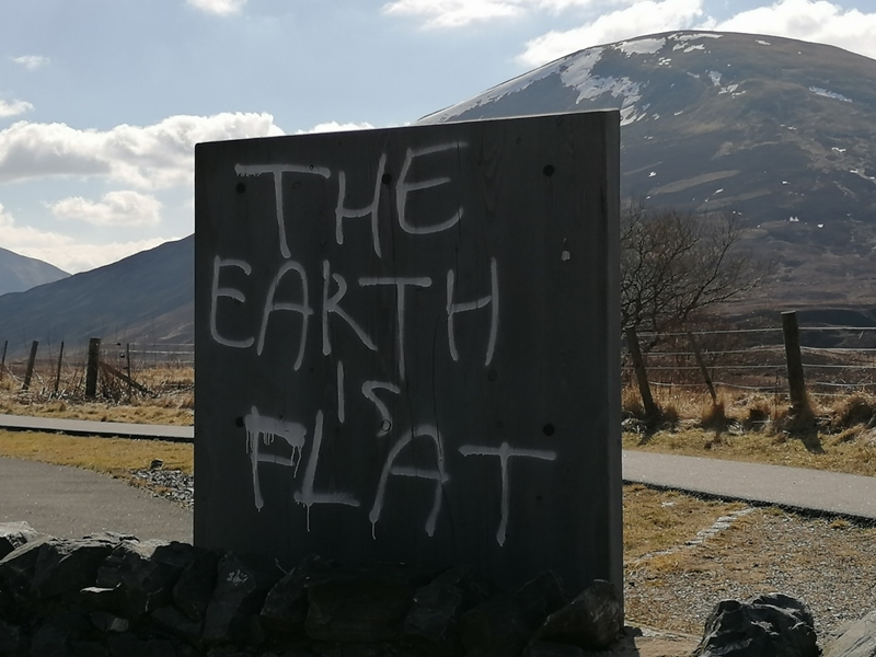 Nessi (žive) sicer nisva videla, vsaj tokrat ne. Ampak Škoti verjamejo, da je. Bo že res. Nekateri med njimi verjamejo tudi, da je zemlja ploščata. So obelodanili to znanstveno resnico na veliki tablo ob cesti.