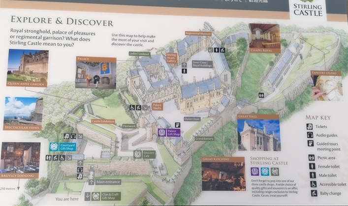Pot sva nadaljeval v Stirling. Gre za eno starejših škotskih mest. Stari del leži na hribu, ki je nudil dokaj dobro zaščito pred morebitnimi napadalci. Obzidje je dokaj visoko, verjetno je mesto res predstavljalo trd zalogaj za vse, ki bi si ga želeli podrediti. Ker je vse skupaj na vzpetini, je tudi razgled po okolici lep, vidi se daleč in tudi to je šlo v korist branilcem mesta.