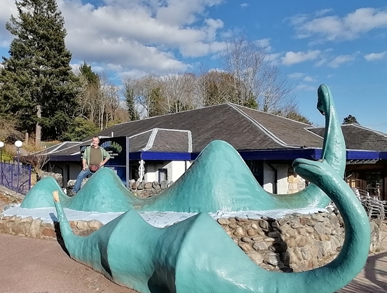 Pot se kar vleče, ampak okoli dveh sva že bila v predmestju Invernessa. Najprej sva poiskala svoje prenočišče, tam pustila svojo prtljago in so odpravila naprej. Zapeljala sva se preko mostu čez reko Ness in kmalu prispela na obalo istoimenskega jezera. Jezero Loch Ness je eno najglobljih jezer na Škotskem, posebno “slavo” si je pridobilo tudi z nesojeno Nessi: pošastjo iz Loch Nessa. Ko sva se peljala ob robu jezera, sem jo prav začutil v svojem srcu (no, mogoče malo nižje, ko mi je zakrulilo v želodcu). V kraju Drumnadrochat je muzej tega jezera, v neposredni bližini pa tudi igralni park, posvečen Nessi. Park je bil sicer zaprt (v zadnjih dveh letih očitno sploh ni bil odprt), ampak z Nessi sem se pa lahko slikal! Prav simpatično me je pogledala, ko sem zlezel na njen hrbet…