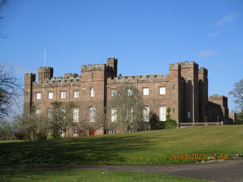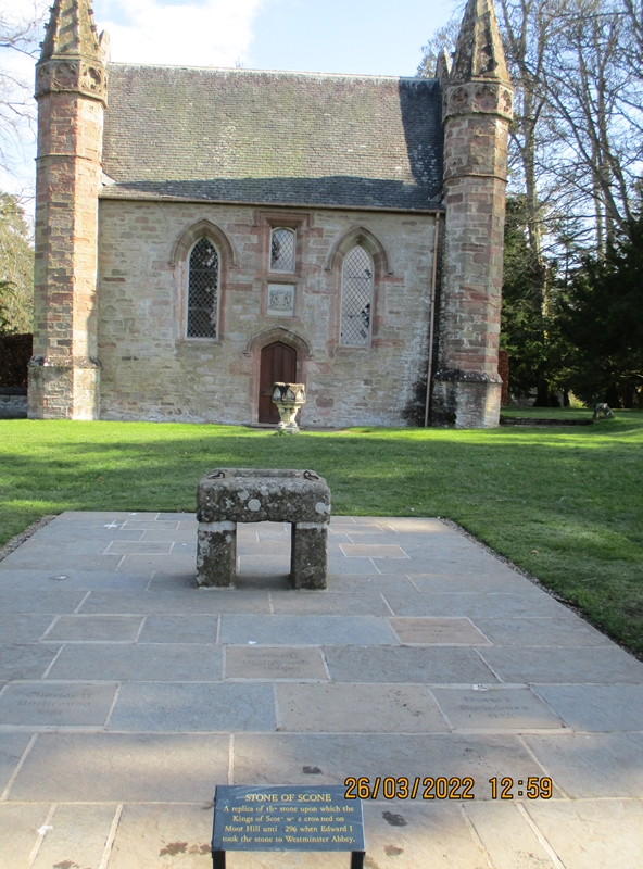 Graščina leži na zares velikem posestvu (po najini oceni nekaj kvadratnih kilometrov). Znana je predvsem po kapeli v njeni neposredni bližini, kjer so včasih kronali škotske kralje. Še danes je pred kapelo ohranjen kamen, na katerega je moral poklekniti bodoči kralj (oz. bodoča kraljica) in prositi za dovoljenje, da so ga lahko kronali za kralja.