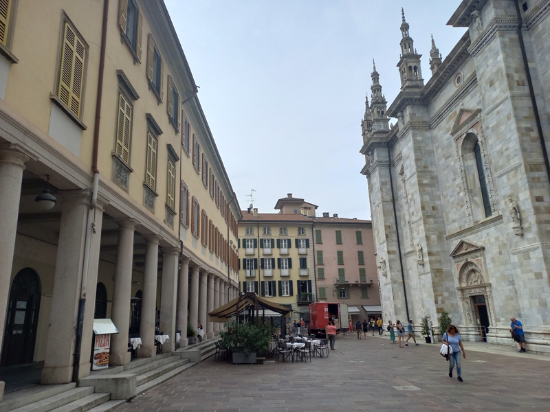 Zjutraj sva se odpravila iz Brd okoli šestih, tako da bi bila mimo Benetk že pred osmo uro. Pri naju je bilo kar prijetno jutro, kar se je pozneje spremenilo in kar nekajkrat so naju presenetile padavine. Tako se je kolesarjenje prvi dan okoli Lago Varese pokazalo kot vprašljiva opcija. Sva sklenila, da prvi dan zato posvetiva potepanju in kolesa pustiva pri miru. Pri Bergamu sva zavila proti severozahodu, najin prvi cilj je bil tako kraj Como, po katerem se imenuje Lago di Como, ki sprva ni bil v najinih načrtih, zaradi vremenskih razmer pa se je najina odločitev spremenila. Vreme je preko dne sicer postalo bolj stabilno, vendar so se naokrog vedno znova prikazovali močnejši oblaki in ponekod v hribih je bilo videti meglice, ki so bile najverjetneje povezane s plohami.