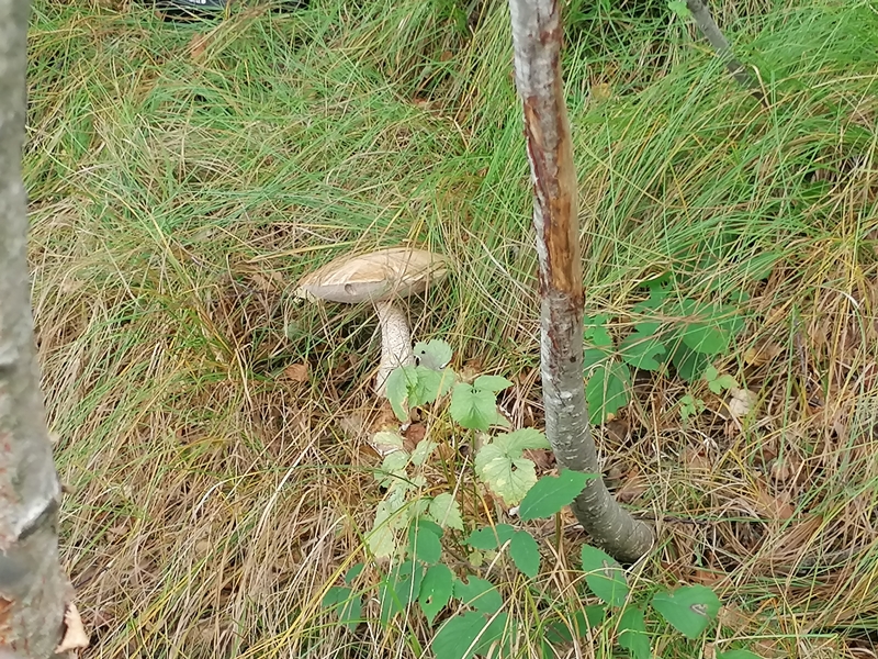Pot do planinske koče sva ponovila, nato pa se obrnila bolj zahodno in po robu zapuščenega smučišča rinila proti vrhu Mottarone. Ampak malo bolj z očmi na pecljih! Če že Italijani nabirajo gobe, zakaj jih ne bi tudi midva. Ne morem reči, da sva imela srečo, ampak do vrha se jih je nabralo kakšno kilo in pol. Večinoma brezovi gobani, vmes se je našla kakšna marela, za piko na i pa tudi pravi, lepi, zdravi jurček!