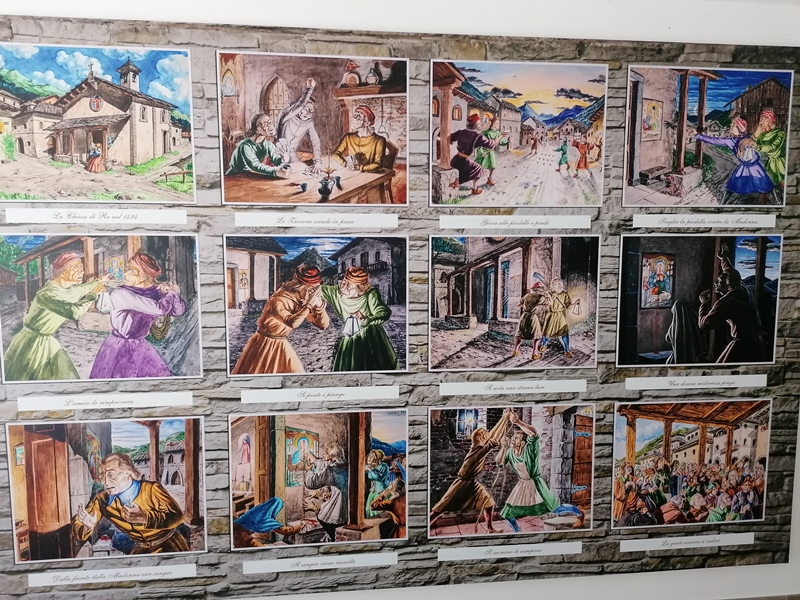 Tokratni dan sva namenila kolesarjenju in pohajkovanju. Prvi cilj je bila dolina Val Vigezzo, po kateri naj bi prav tako potekala kolesarska pot. Načrt: poiščeva parkirišče v spodnjem delu dolin in se potem zapeljeva navzgor po dolin in se nato spustiva nazaj do izhodišča (na dobrih 10 km je višinske razlike cca 150 metrov). Najino izhodišče je bilo v kraju Re pri samostanu Santuario della Madonna del Sangue (samostan pri krvaveči Mariji). Velika bazilika je znana božjepotna cerkev na tem italijanskem koncu. Cerkev je bila zgrajena v 15. stoletju, po čudežu, ki se je zgodil neposredno pred koncem 14. stoletja, o čemer govori tudi legenda, ki je upodobljena na steni bazilike.