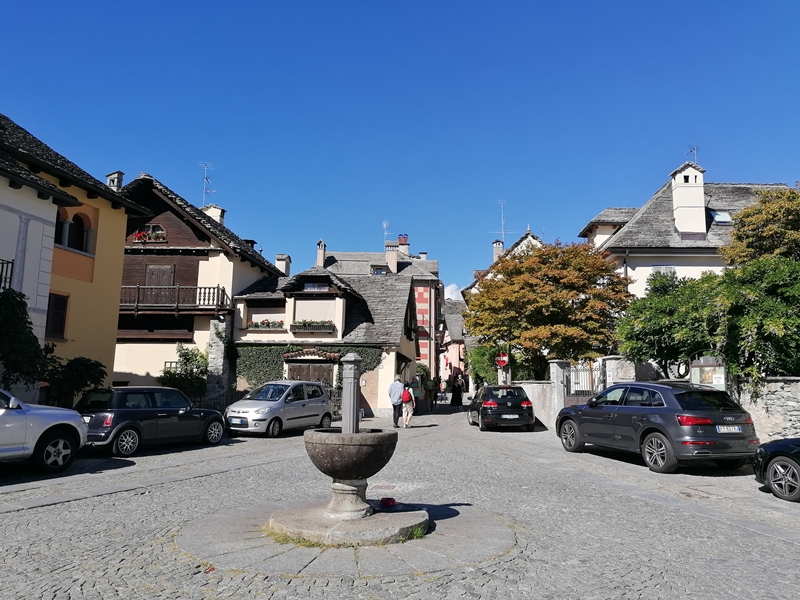 V bližini bazilike se je sicer pričela kolesarska pot, ki se je kmalu usmerila na glavno cesto. Kmalu zatem je bilo zopet nekaj kolesarske poti, vendar res malo, potem nazaj na cesto. Naprej višje po dolini pa do kraja Santa Maria Maggiore (dobrih 800 metrov nadmorske višine) kolesarske poti nisva več našla. Ali je sploh ni ali pa je tako slabo označena! Je pa dolina očitno precej topla, saj je kar solidno poseljena, pa tudi rastje je zelo bujno.