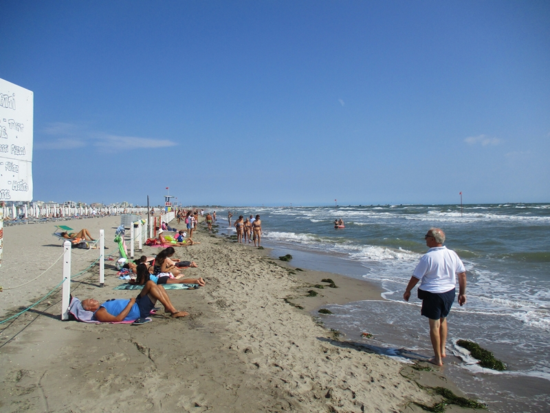 Kolesarila sva ob morju proti severu. Naslednji večji kraj je Lido di Nazzioni, kjer je bil počitniški utrip sicer prisoten, vendar kakšne posebne gneče ni bilo videti. Tudi precej nastanitev je bilo praznih (vsaj tako sva sklepala, saj ni bilo videti avtomobilov). Sledila sva označeni kolesarski poti, ki povezuje Ravenno in Benetke.. Po Lido di Nazzioni sva zapustila urbani del in se po varovalnem nasipu (da se morje ne more razlivati proti notranjosti) prebijala po dokaj slabo urejeni poti proti severu. Na zahodno stran je bil večji zatok, vmes do morske obale pa še jezero Lago di Nazzioni, ki sva ga le občasno videla. Pot se je nato spustila z nasipa v notranjost ter zavila v lep gozd, kjer je bilo kolesarjenje zares prijetno, saj so naju krošnje dreves skrile pred dokaj toplim dopoldanskim soncem.