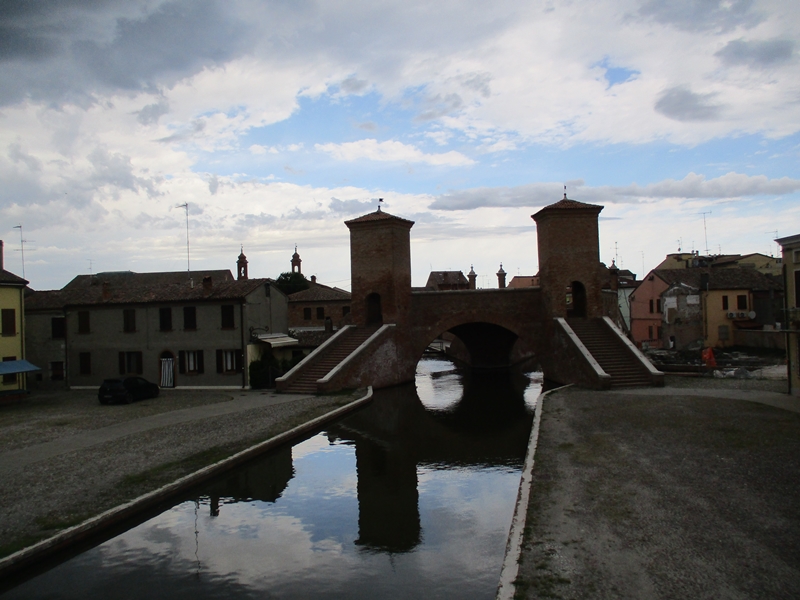 Zjutraj v smeri Chomaccio, ki je prav zanimivo mestece. Včasih je spadalo k papeški državi in je takrat doživelo svoj razcvet, ko pa ga je prevzela Ferrara, je utonilo v sivini podeželja. Je pa zanimivo njihovo “tromostovje”, most za pešce na otočju treh kanalov.